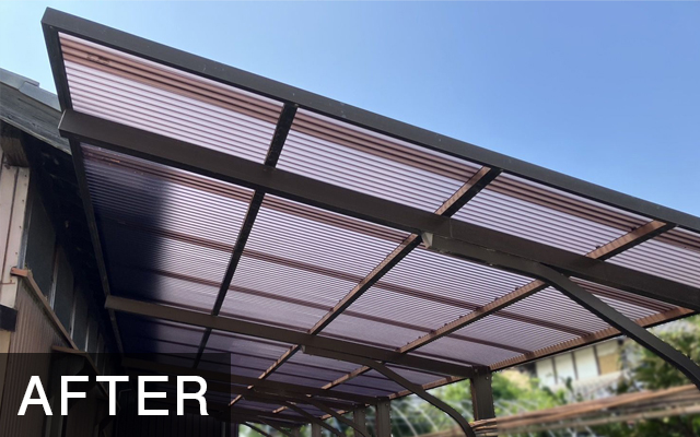 雹害にあったカーポートの、波板の貼り替えをご依頼いただきました。