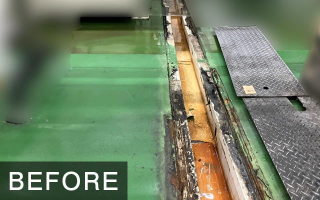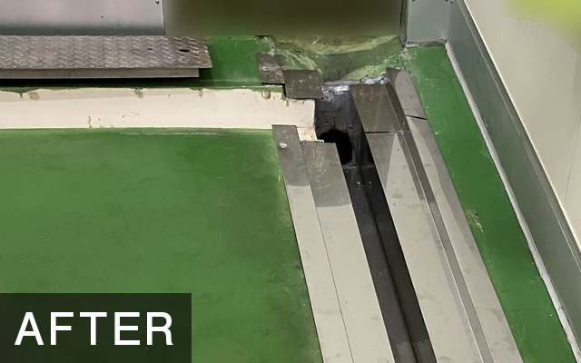 工場内にある既存の排水溝(コンクリート)に、SUSで成形した型枠を設置しました。